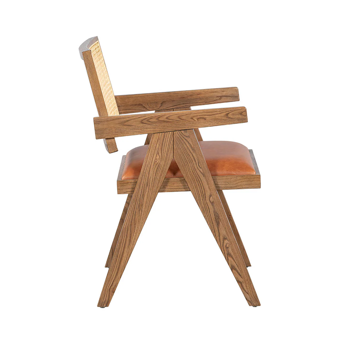 The Douglas Leather Dining Chair offers a perfect blend of rustic charm and contemporary design. Its genuine leather seat provides luxurious comfort, while the sturdy wooden frame with cane back and streamlined silhouette add timeless elegance to your dining space.
