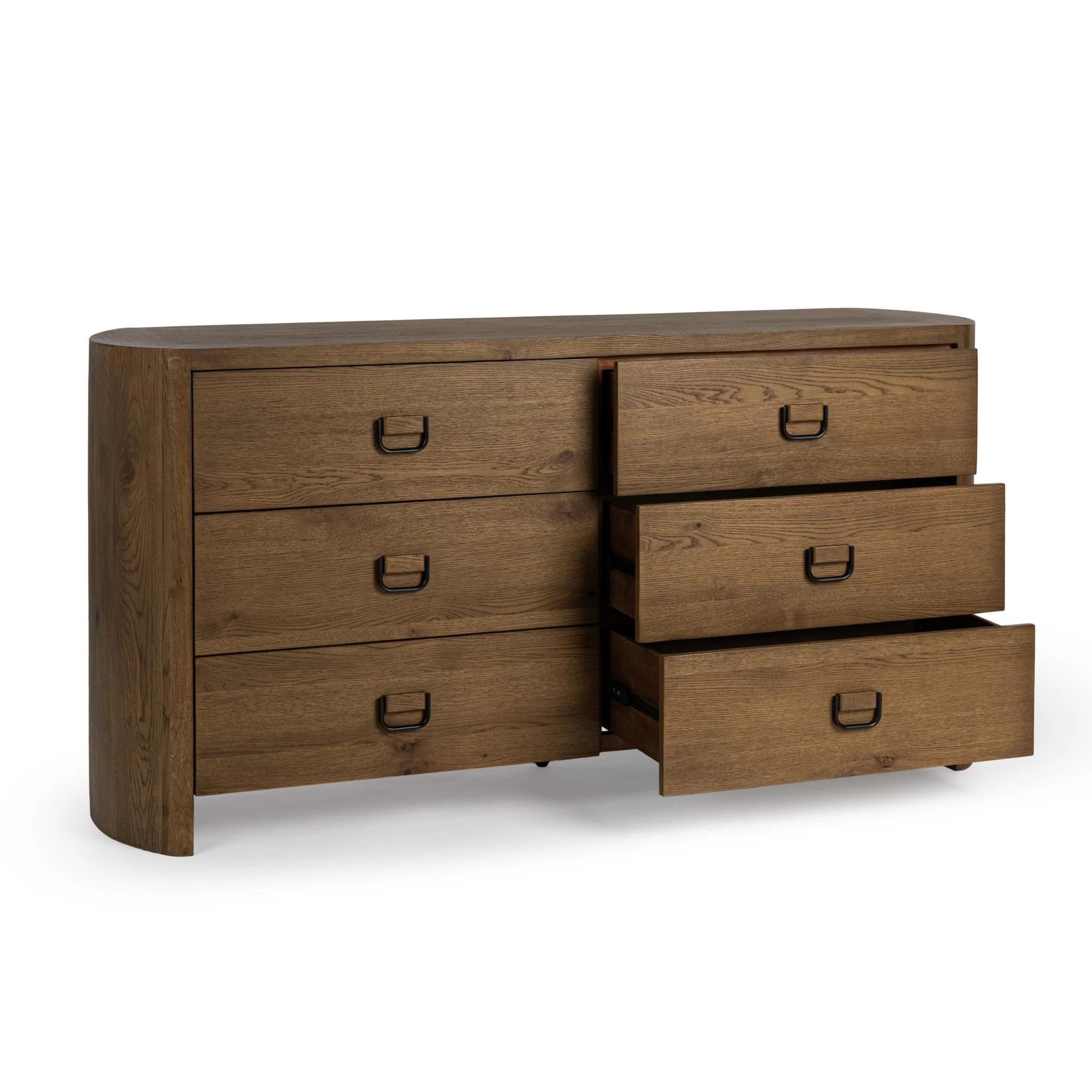 Bring timeless character and warmth to your bedroom with this handcrafted dresser made from reclaimed oak veneer. Its natural grain and smooth hand finish highlight the organic beauty of wood, while metal glides ensure seamless drawer movement. Spacious and stylish, it offers generous storage for clothes and linens. Perfect for rustic, modern, or transitional interiors, this dresser blends eco-conscious craftsmanship with everyday luxury. A lasting statement of refined comfort.